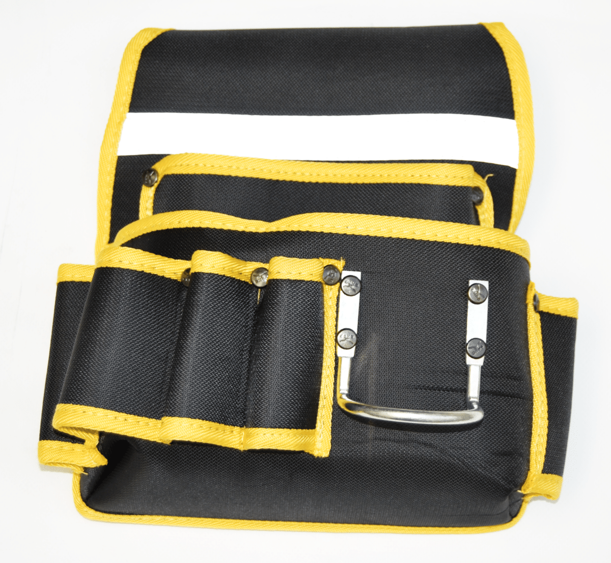 Las herramientas más grandes se pueden detener en el bolsillo más grande a través de las bandas elásticas en el interiorGancho y correa de metal duradero Poliéster