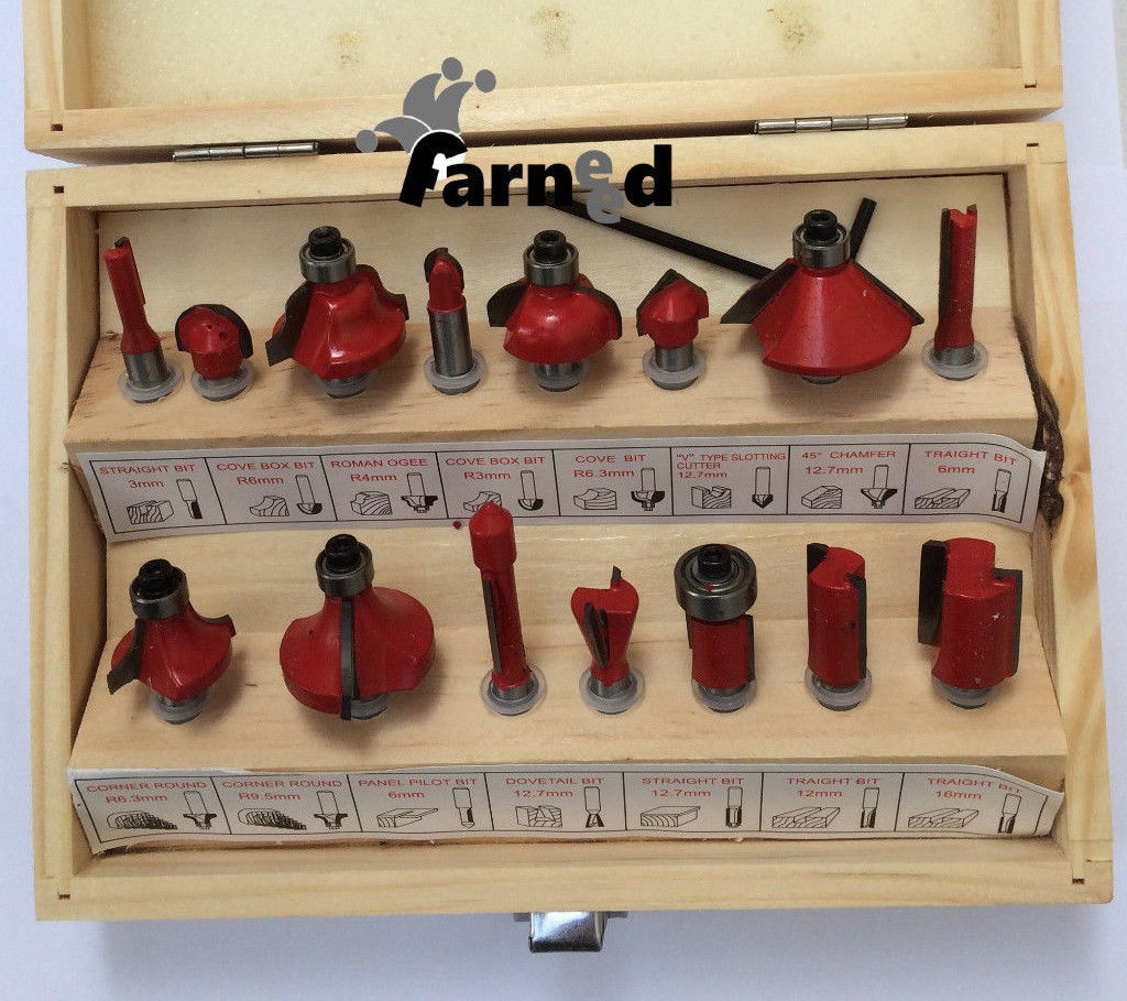 Juego de 15 cortadores de cadolo con vástago de 8 mm, fabricados en acero con dos filos de corte, para pantógrafo o fresadora vertical en una cómoda caja de madera. Ideal para trabajar la madera y para procesar y crear marcos. Herramientas imprescindibles para carpinteros y ebanistas.
