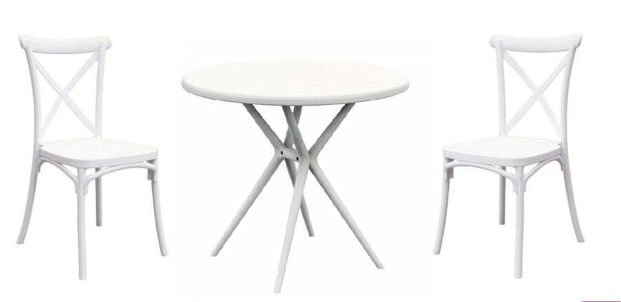 Kit mesa redonda cm Ø80 cm+ 2 sillas polipropileno bar restaurante interior exterior blanco 610v