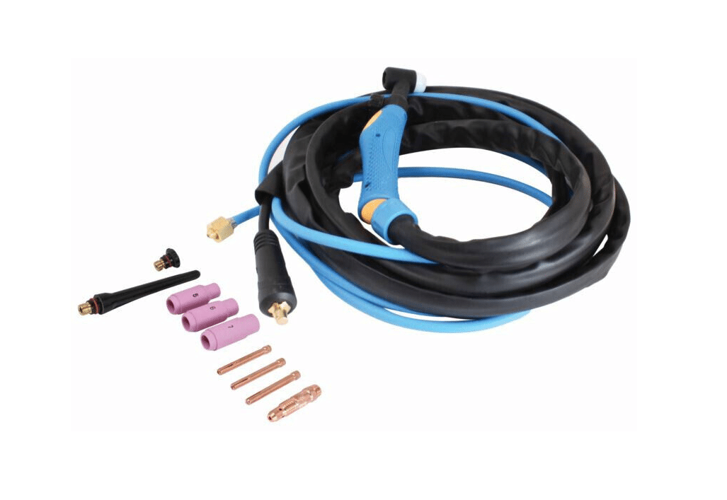 Il set contiene: · torcia di saldatura con set di cavi · valvola lunga · valvola corta · ugelli ceramici: 5, 6 e 7 · manicotti in rame per elettrodi: 1,6, 2,0, 2,4 mm · ugello di saldatura parametri: · spina di corrente: 10-25 mm2 · lunghezza cavo di alimentazione: 4 m · lunghezza del tubo del gas: 6 m · Corrente nominale: 150 A · ciclo di lavoro:35% · portata argon: 7 l/min. +/-5% · tipo di raffreddamento: aria · portata minima: 7 l/min. · pressione in uscita: 0,1-0,3 MPa